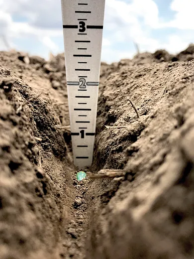 Two inches is the standard for tilled corn across the Midwest. ‚Get that planting depth set at 2 inches, and then check on it every other day to make sure you’re getting 2 inches,‛ says Iowa State’s Mark Licht. And, while it’s easy to rely on sensors and planter settings, remember to get out of the tractor cab and into the field to check the depth. Adjust equipment (like planter down pressure) to accommodate for soil condition. But remember: Operator hurry impacts planting depth as much as equipment settings.