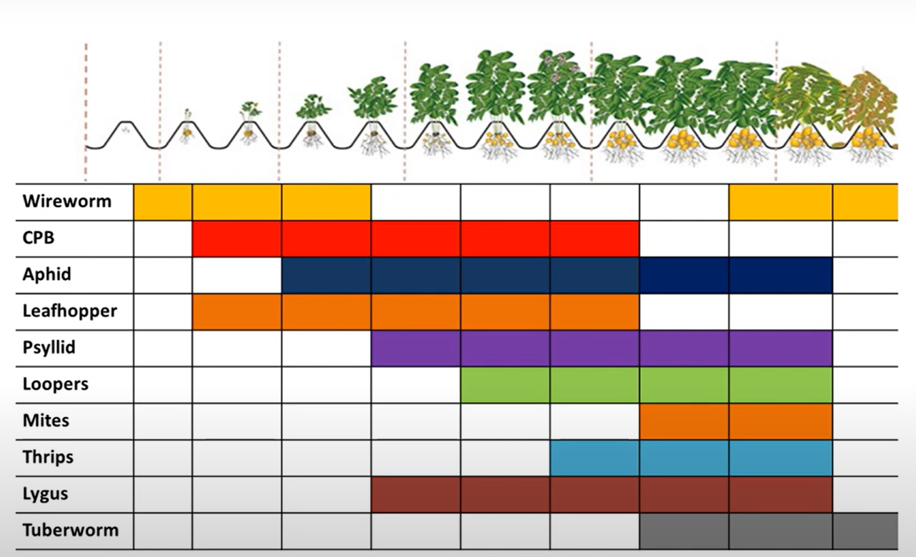 Dave Crowder walks through a scenario for potato beetle to explain how growers benefit from the Potato DAS. “Our Extension scientists often tell growers to time their sprays to when 50 percent of the eggs have hatched,” Crowder explains. Potato beetle larvae take two to three weeks to pupate. “So while they’re pupating, that’s a period of time that the grower should not be using insecticides targeting potato beetles.”