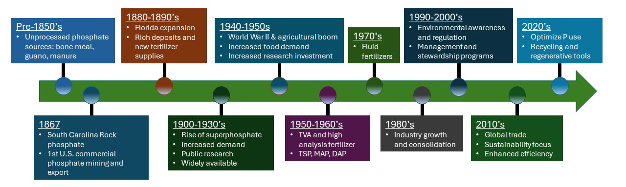 The development of the North American phosphate (P) fertilizer industry represents one of the most significant agricultural and industrial transformations in American history. From its humble beginnings in the mid-19th century to its current status as a global powerhouse, the U.S. P industry plays a crucial role in feeding the nation and the world. The evolution of the domestic P industry mirrors other industrial themes in American development: geographic expansion, scientific innovation, corporate consolidation, environmental awareness, and global economic integration.