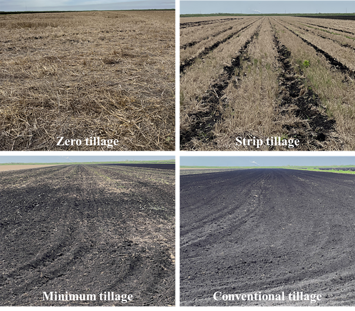 In contrast, conservation tillage minimizes soil disturbance by retaining crop residues on the surface (Busari et al., 2015) and employing reduced tillage techniques such as zero, strip, or minimum tillage (Figure 4). These practices help conserve organic soil by reducing its exposure to microbial decomposition, thereby slowing OM oxidation (Gambolati et al., 2005). Additionally, conservation tillage enhances soil health and fertility by increasing OM input into the soil system (Düring et al., 2002; Ecoworld, 2024). Another key benefit of conservation tillage is its role in improving soil aggregation and forming macro-aggregates, which help mitigate soil loss due to wind erosion (Weidhuner et al., 2020). This is particularly beneficial in the hot summer months when dry, fine soil particles are more prone to being blown away by wind.