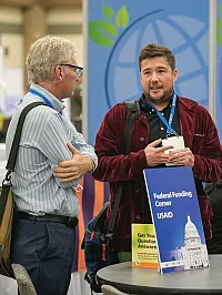 Attendees speak with program officers from federal funding agencies during the Federal Funding Corner event.