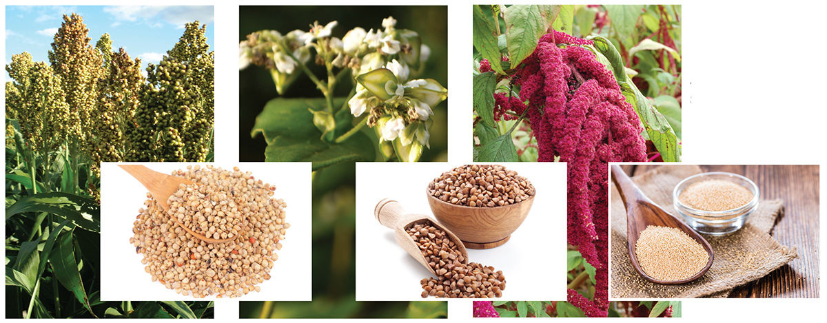 In addition to these true wheats, the term has been broadened by marketers to encompass several pseudocereals and lesser-known grains including quinoa (Chenopodium quinoa Willd.), buckwheat (Fagopyrum esculentum Moench), amaranth (Amaranthus spp. L.), teff (Eragrostis tef [Zucc.] trotter), millet (various genera such as Panicum, Setaria, Digitaria, and Echinochloa), and sorghum (Sorghum bicolor L.). While these species are not botanically related to wheat, they are included because of their ancient use in human diets, nutritional richness, and traditional cultivation systems.