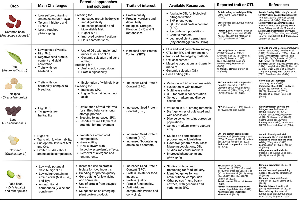 Cordoba, H. A., Sadohara, R., Gali, K. K., Zhou, J., Hart, J., Alexandre, A. C. S., Cichy, K., … & Hoyos-Villegas, V. (2025). Breeding for plant-based proteins in pulse and legume crops: perspectives, challenges and opportunities. Crop Science, 65, e70137. https://doi.org/10.1002/csc2.70137